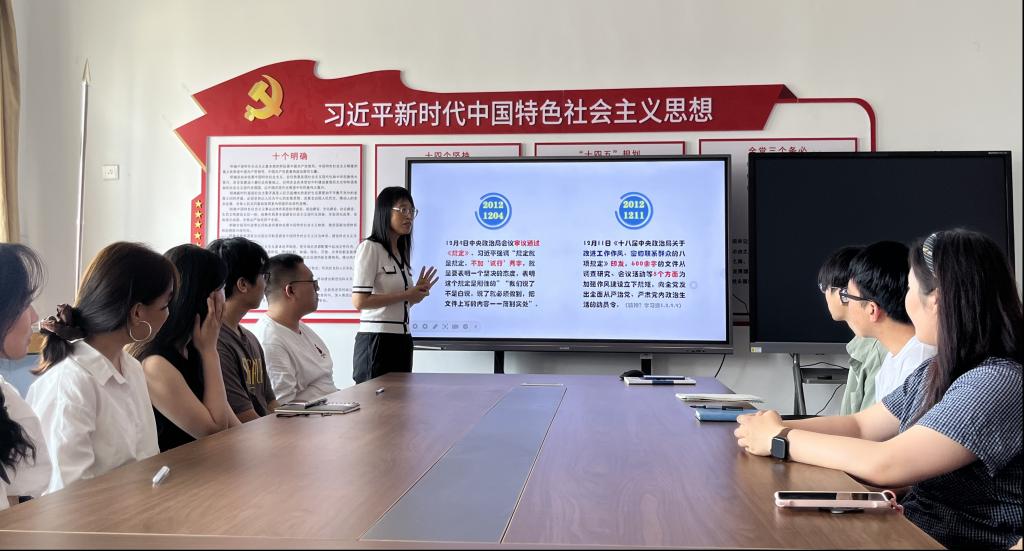 祃海霞系统解读中央八项规定出台的背景、重大意义、经验成效、典型案例等内容,强调中央八项规定精神是全面从严治党的“先手棋”,作为即将踏入社会的党员,必须把纪律和规矩挺在前面,在入职之初就筑牢拒腐防变的思想防线。祃海霞和同学们一起重温“四讲四有”合格党员标准,并发起“铭记院训、恪守诚信,信念坚定、德行兼备,感恩常在、担当责任,勇于创新、共筑未来”倡议,做政治上的“明白人”、作风上的“清白人”、行动上的“实干人”,把中央八项规定精神转化为履职尽责的动力,以扎实的工作业绩展现新时代党员的担当作为。