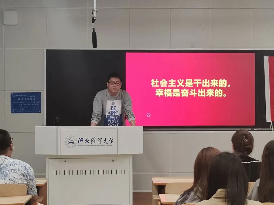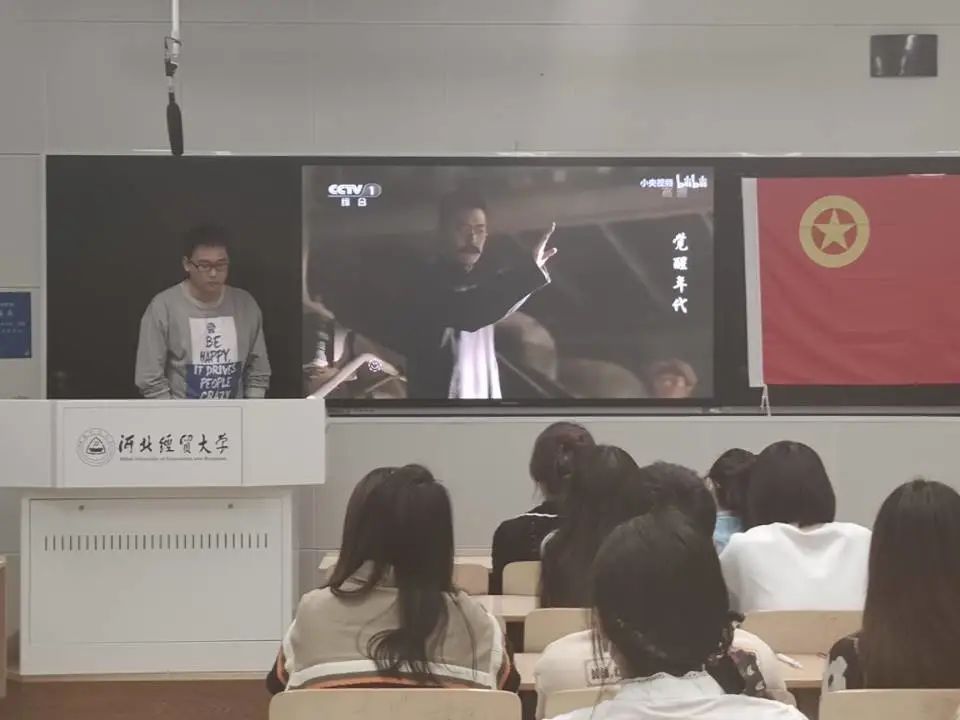 在活动中,王洋老师围绕并强调“社会主义是干出来的,幸福是奋斗出来的”这一主题进行深入讲解。以习近平总书记在2018年春节团拜会上的讲话为切入点,围绕“社会主义是干出来的,幸福是奋斗出来的”这句话,表达了通过我们的不懈奋斗,往后生活一定会更加幸福这个观点。接着,王洋老师放映了《觉醒年代》中有关蔡元培、李大钊、鲁迅等的经典片段,借此以勉励同学们向这些先辈们学习。通过学习,增强团支部的凝聚力、向心力,坚定不忘初心、牢记使命、真抓实干、砥砺前行的信心和决心,为实现中华民族伟大复兴的中国梦而贡献自己的一份力量。