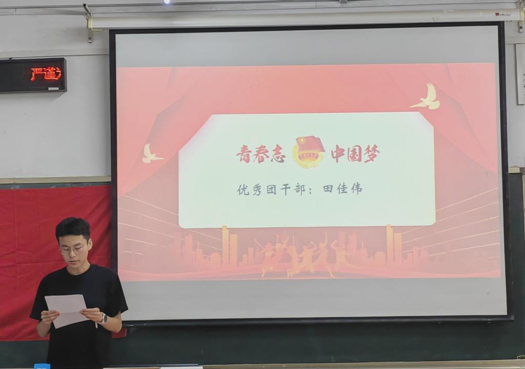 大会在雄壮激昂的国歌声中拉开序幕。首先,团委组织部部长袁晨雨宣读了《关于2022-2023年度“优秀团干部”“优秀团支书”“优秀团支部”的表彰决定》,王洋老师为获奖同学颁奖并合影留念。