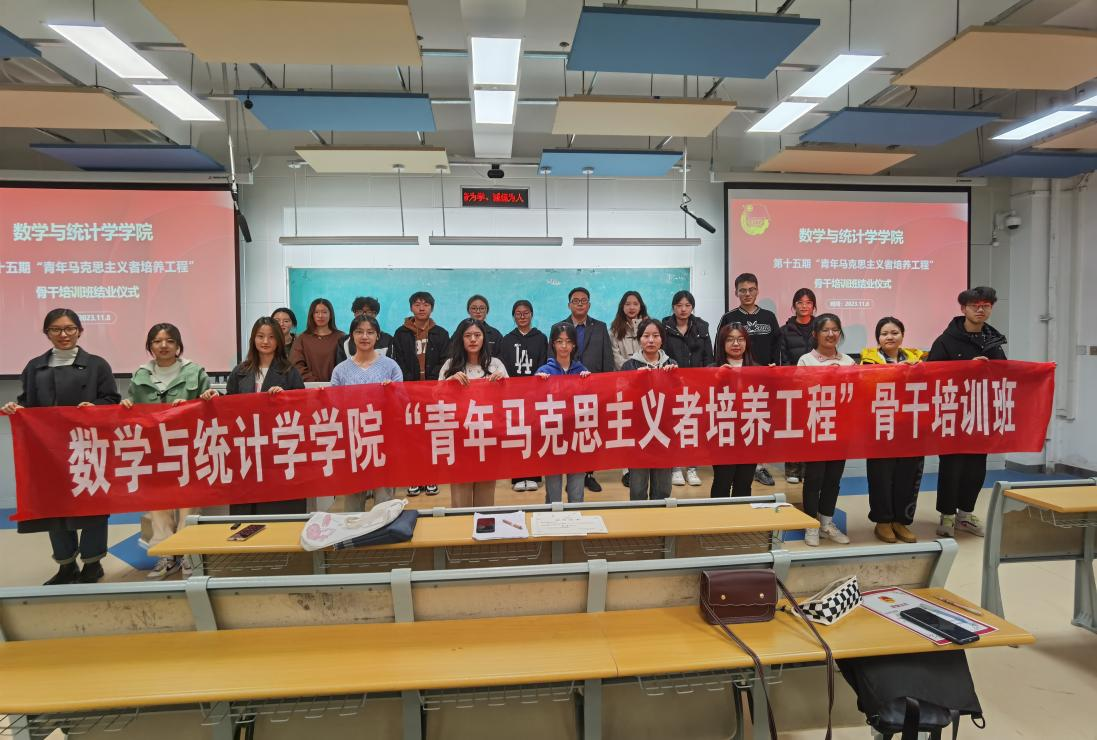 11月9日,数学与统计学公司于北三教A201举行第十五期“青年马克思主义者培养工程”骨干培训班结业仪式,院团委书记王洋老师出席并讲话,全体青马班成员参加。