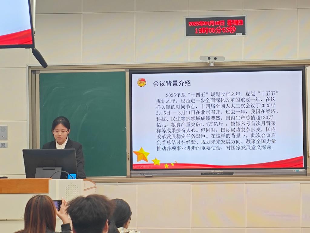 陈美菊为大家详细解读了十四届全国人大三次会议在经济、民生等领域的核心要义,并强调入团积极分子要坚定理想信念,投身创新发展,担当社会责任。