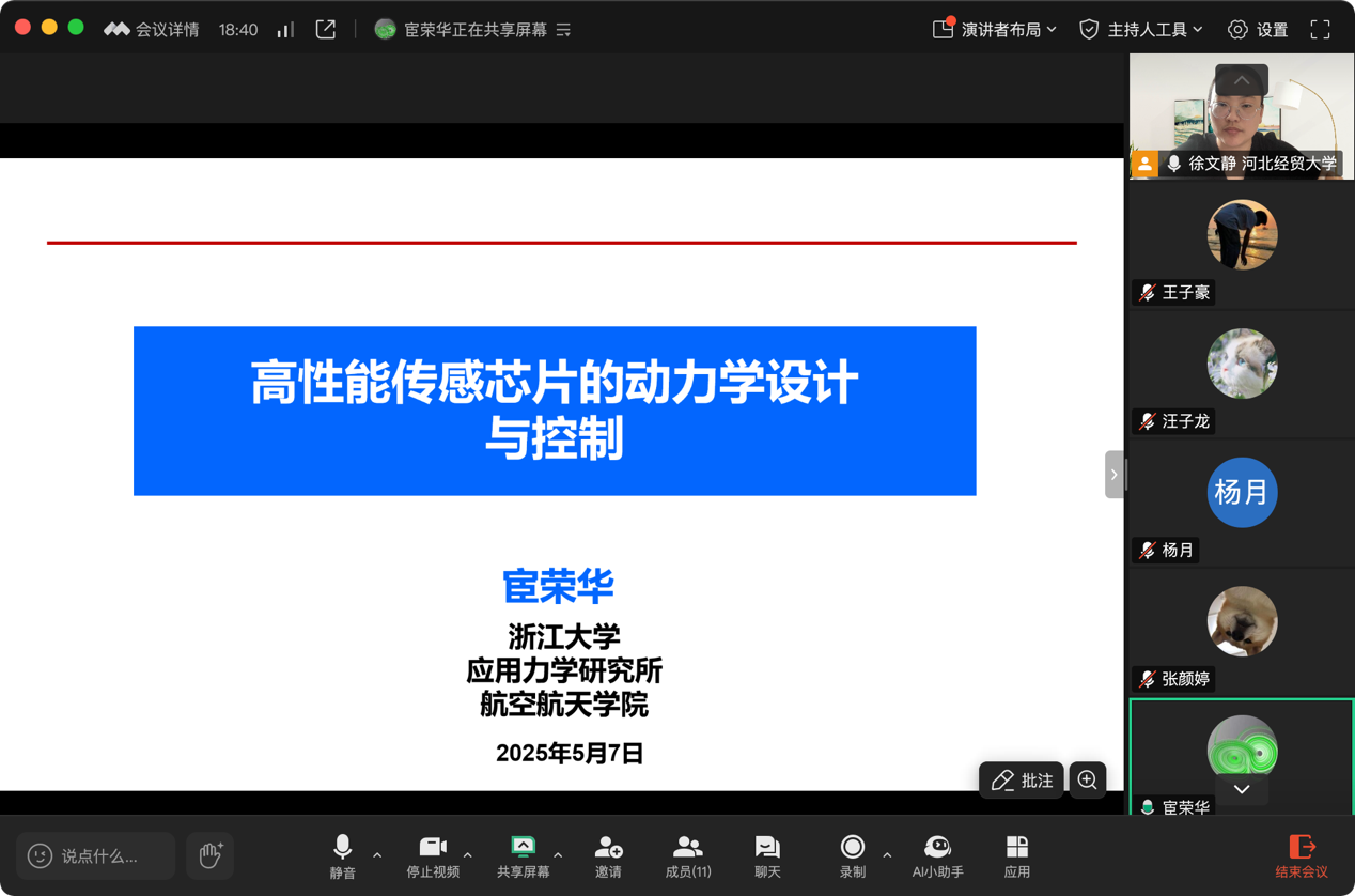 5月7日下午,浙江大学宦荣华教授应英国365集团公司邀请在线上作题为“高性能传感芯片动力学设计与控制”的学术报告,相关专业师生20余人参会。