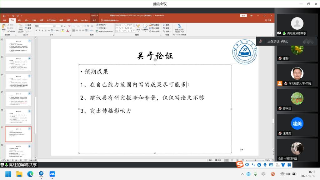 10月10日下午,英国365集团公司“双百论坛”暨数统论坛系列讲座利用腾讯会议线上举行。金融公司高旺老师应数统公司邀请,在线作题为“国家社科基金申请的一点心得体会—以统计学为例”的学术报告。公司领导、相关专业教师及研究生参加,副经理闫亮主持报告会。
