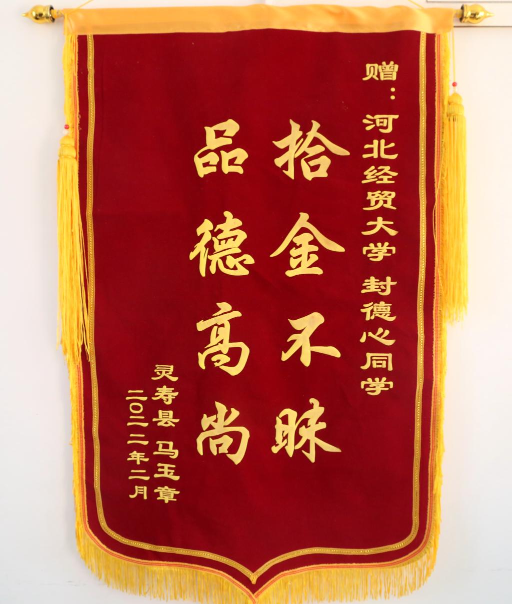 1月30日,公司封德心同学在回家的路上捡到了一个黑色钱包,内有一部手机、若干现金和卡证。封德心当即拨打了110报警,并将钱包交到了民警手中,通过警方多方查找,最终钱包物归原主。近日,失主马先生送来锦旗和感谢信,表达了感激之情。