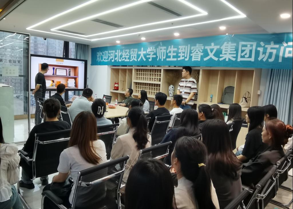 9月19日下午,数统公司组织2020级部分毕业生赴河北睿文网络集团有限公司实地参观交流,公司党委副书记刘贵来、2020级毕业生辅导员杨晨参加,集团负责人陪同并座谈。
