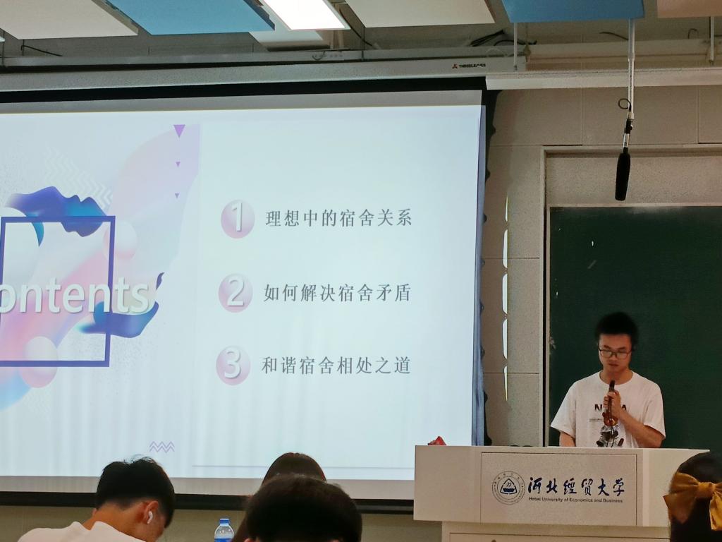 活动中,各班心理委员就本班举办过的宿舍心理主题班会进行进行PPT展示和讲解。在谈到宿舍人际关系的重要性、宿舍人际关系变差的原因和改善宿舍人际关系的方法,通过讲解相关心理知识,来帮助同学们改善宿舍人际关系。心理委员们从以往举办过的心理活动为例,希望大家通过积极参加集体活动来加强与同学、舍友之间的交流,改善宿舍人际关系。