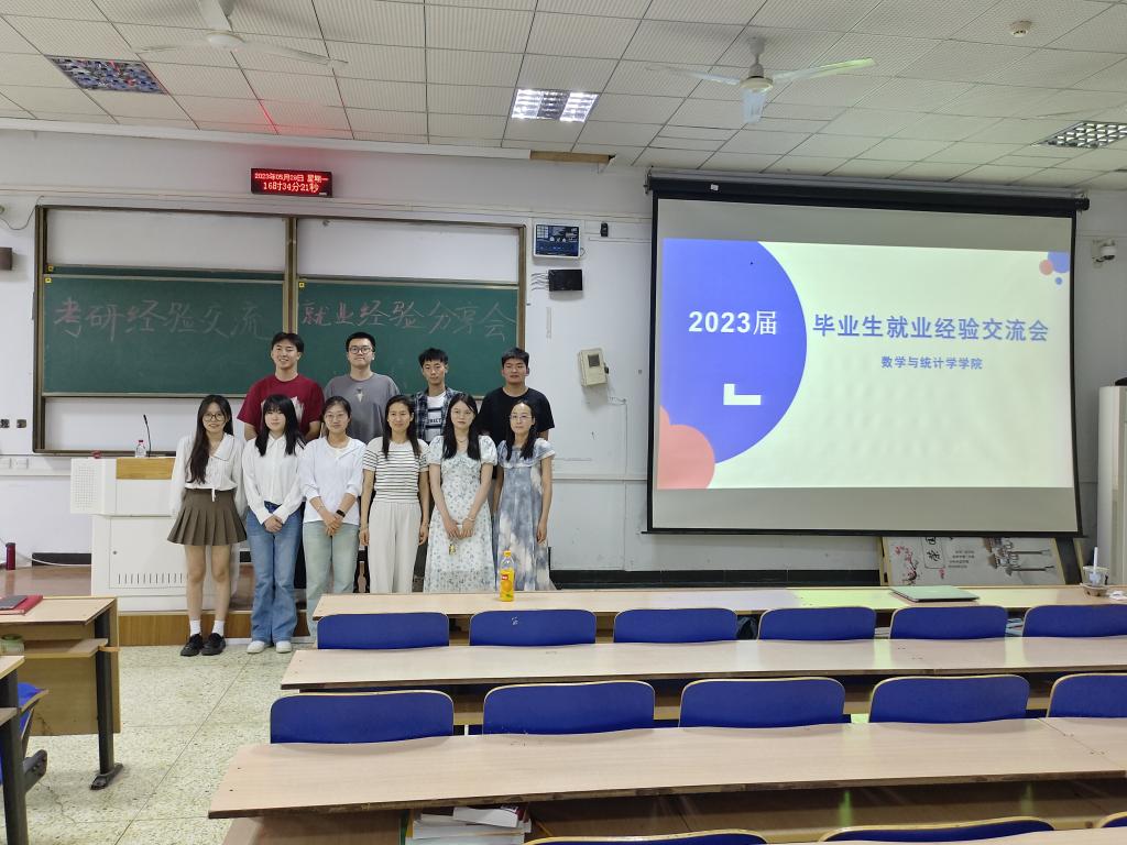 5月29日下午,数学与统计学公司在北三教C101举行2023届毕业生就业经验交流会,会议由高会颖老师主持,2020级全体同学参加。