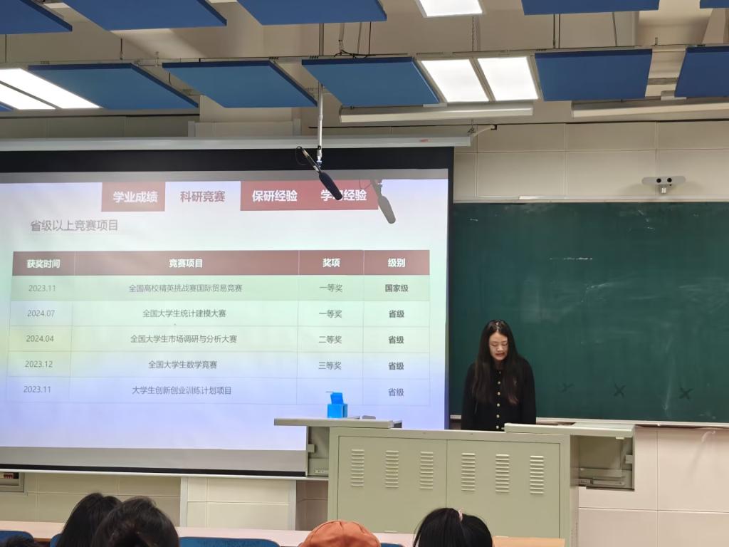 2025届保研成功的本科毕业生代表陈一凡、靳佳璐,以及三位优秀在读研究生代表王旌屹、刘兴阳、吴文凯分别结合自身实际与大家进行了分享。