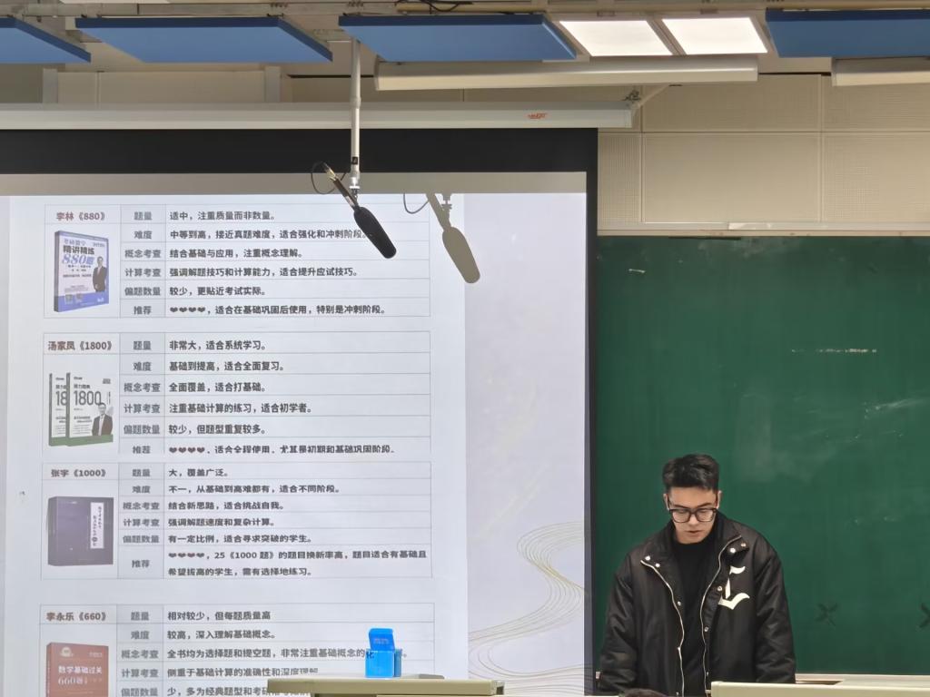 陈一凡、靳佳璐与同学们分享了保研经验与学习方法,提出保研要先打基础,成绩优先,然后要提高综合能力,多多参加竞赛与科研项目。随后,王旌屹、刘兴阳、吴文凯向大家详细讲解了考研流程,科目重点及备考流程,并为同学们推荐了相关考研书籍与学习网站,为备考的大三学子送上祝福。