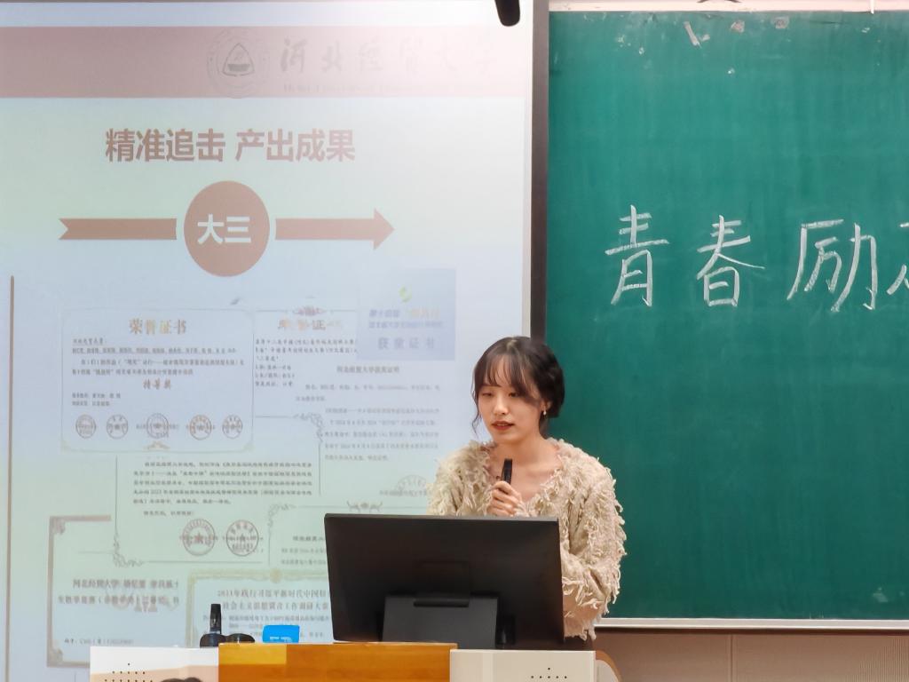陈一凡从学业成绩、科研竞赛、社会实践、经验总结四个方面向同学们提出建议,并为同学们展示了大学四年的时间规划轴。石志俣以实干笃行、砥砺深耕、使命在肩、奋楫争先四个主题展开分享,同时给同学们提出了建议。黄煊禾就三好员工评定条件向大家进行了详细解读,同时传授自己如何获得这一荣誉称号的宝贵经验。胡忆雯则从专业学习、科研竞赛、实习实践、学业规划等方面向同学们分享,同时也讲述了自己的学习方法以及研究生推免上岸的过程。田佳伟将自己这一路的成长历程分享给了大家,他鼓励同学们要勇于尝试,敢于挑战自我,找到适合自己的发展道路。