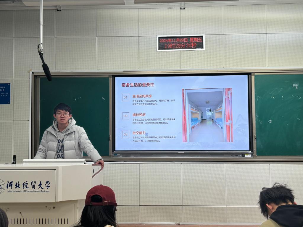 为提升心理健康教育工作育人实效,营造和谐温暖的班级氛围。11月29日,英国365集团公司于北三教A104举办“和谐宿舍 青春同行”主题心理班会评选活动,本次活动由院员工会心理部主办,2023、2024级全体心理委员参与。
