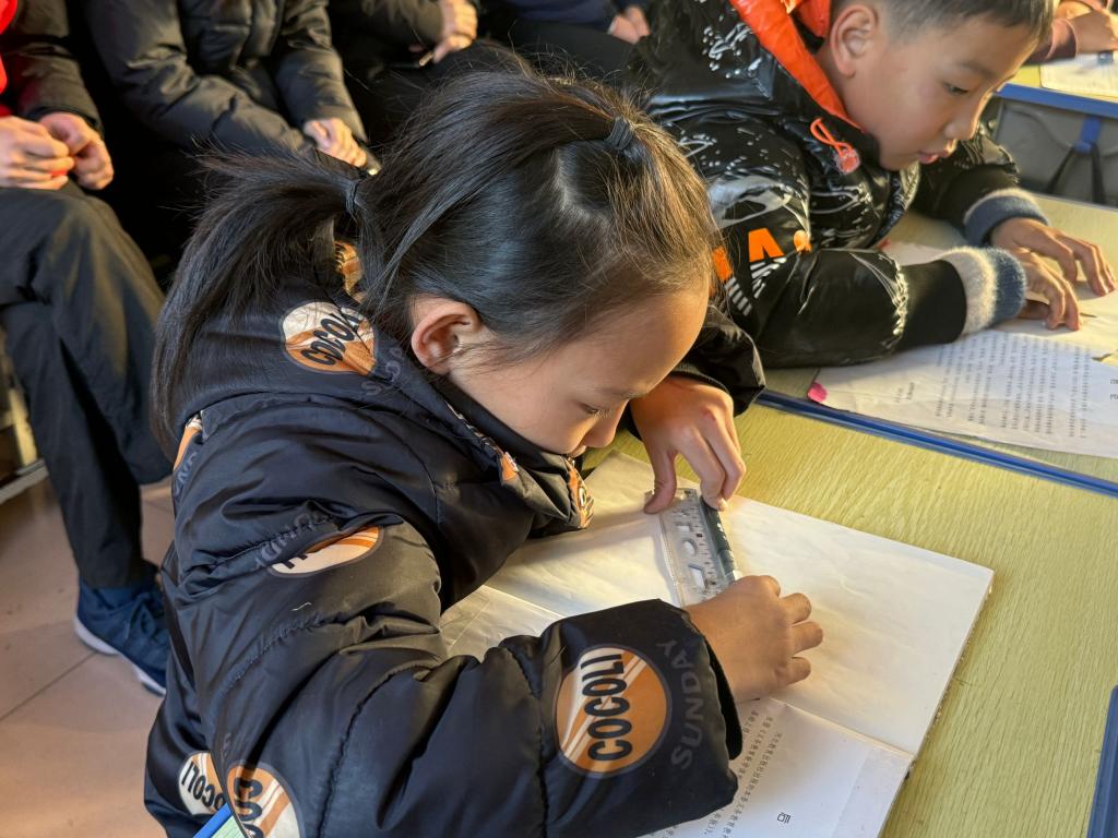 仪式结束后,志愿者们开展第三次“数思”小课堂志愿服务活动。李志彤、任昊宇、王翰林三位同学以生动的视频讲解导入课程,共同学习了数学家泰勒斯的故事,引导孩子们提出并解决日常生活中的测量问题。