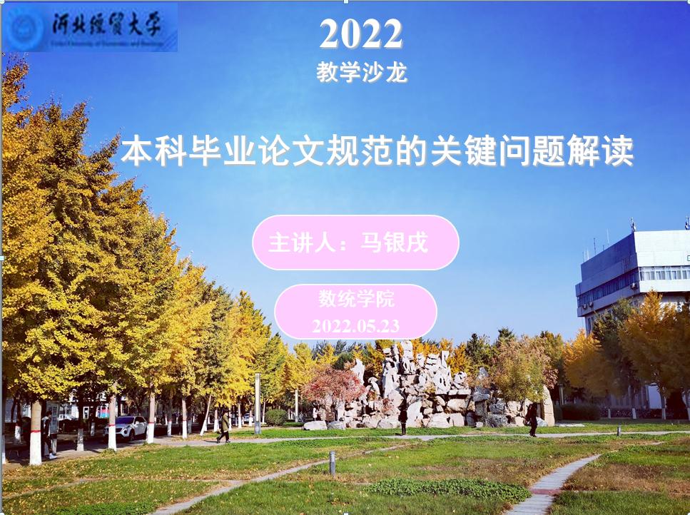 5月23日,由教学评估与教师教学发展中心主办、数学与统计学公司承办的本年度第33期教学沙龙顺利举行。数统公司统计学系主任马银戌教授通过腾讯会议做“本科毕业论文规范的关键问题解读”研讨交流。