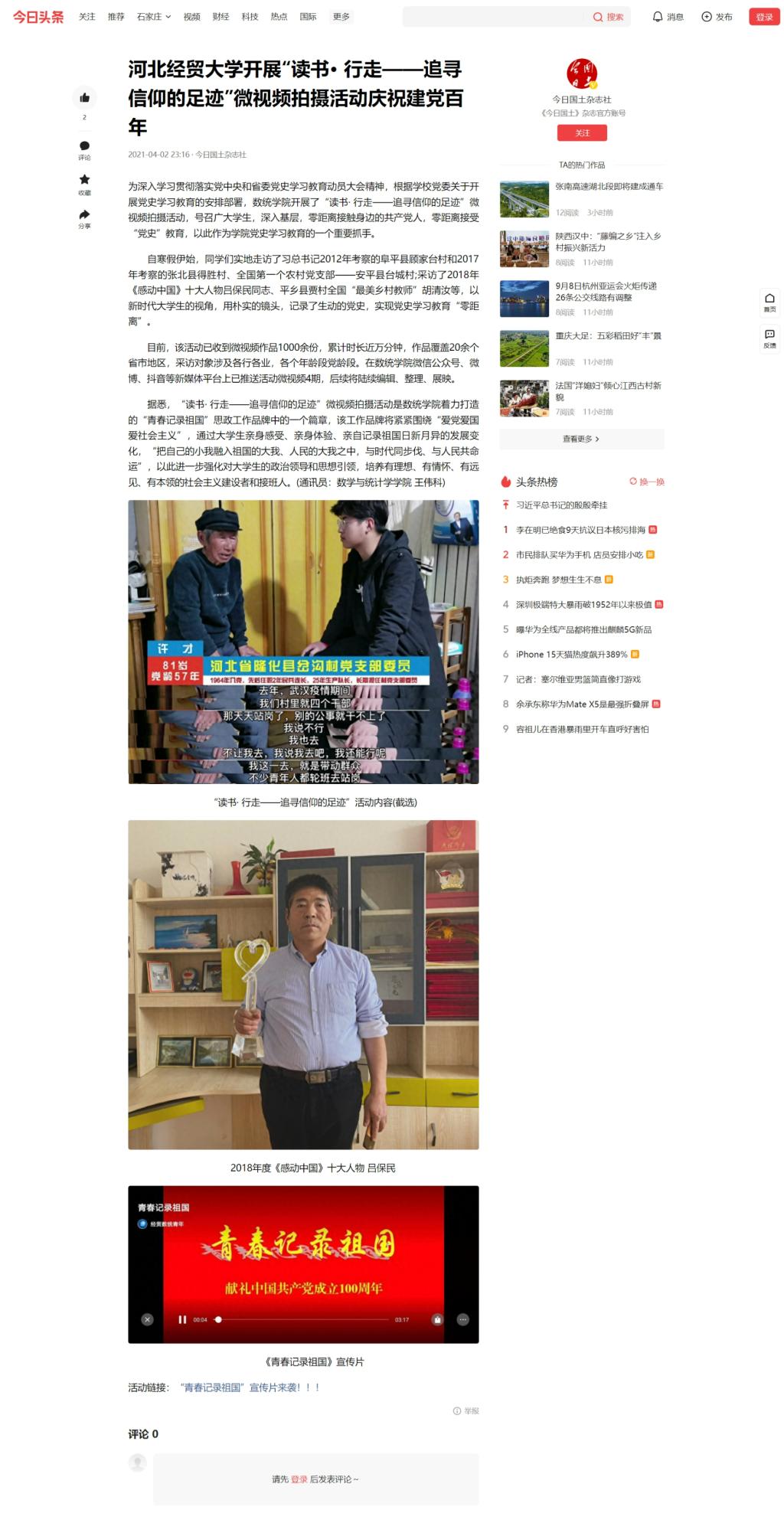 【今日头条】公司开展“读书· 行走—追寻信仰的足迹”微视频拍摄活动庆祝建党百年