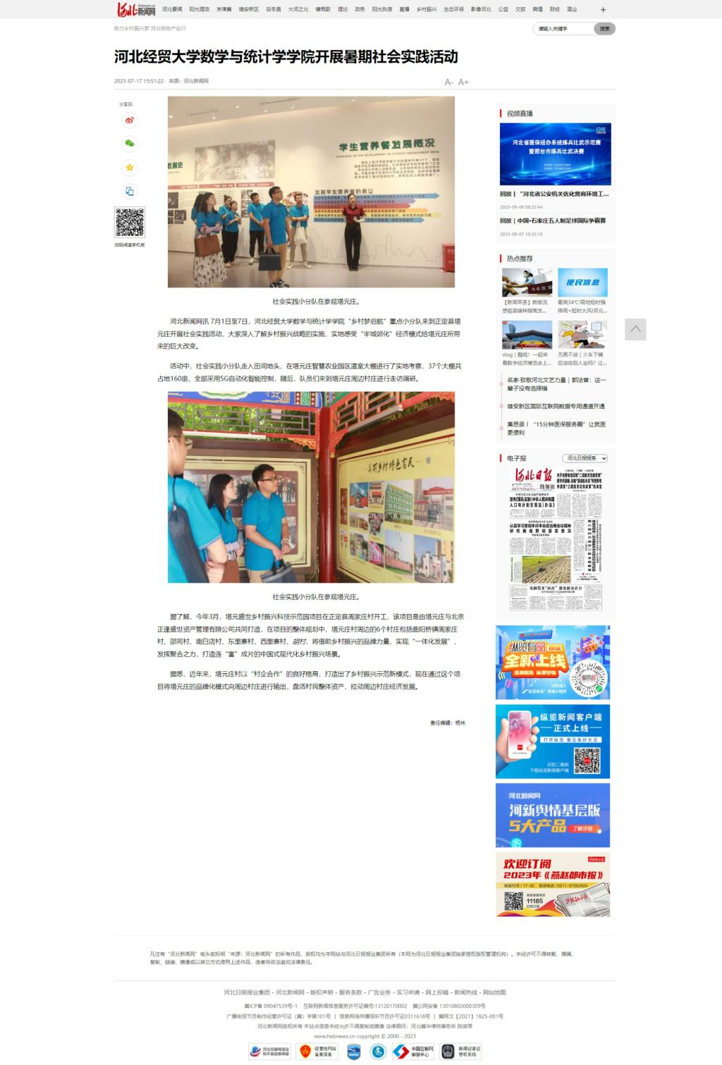 【河北新闻网】英国365集团公司数学与统计学公司开展暑期社会实践活动