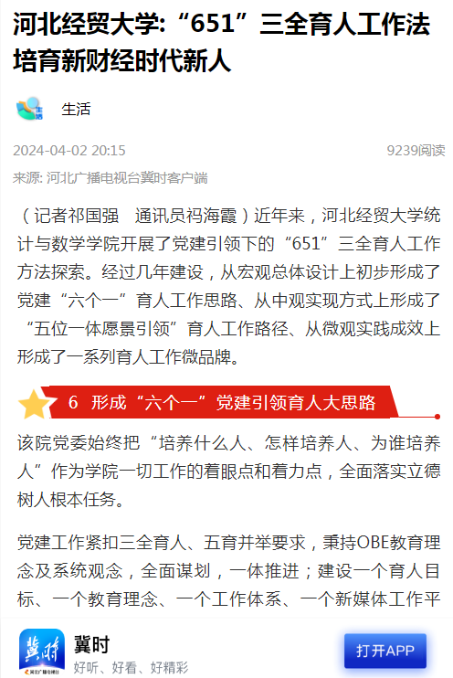 【河北广播电视台冀时客户端】英国365集团公司:“651”三全育人工作法培育新财经时代新人