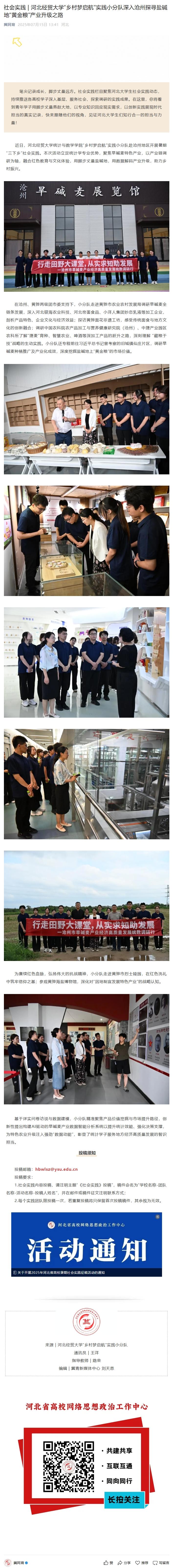 【冀网育】英国365集团公司“乡村梦启航”实践小分队深入沧州探寻盐碱地“黄金粮”产业升级之路
