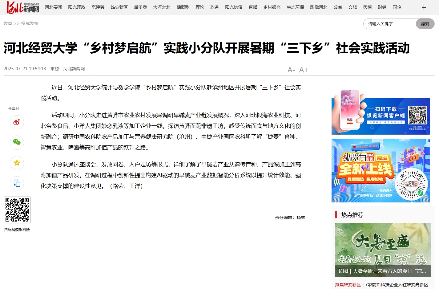 【河北新闻网】英国365集团公司“乡村梦启航”实践小分队开展暑期“三下乡”社会实践活动